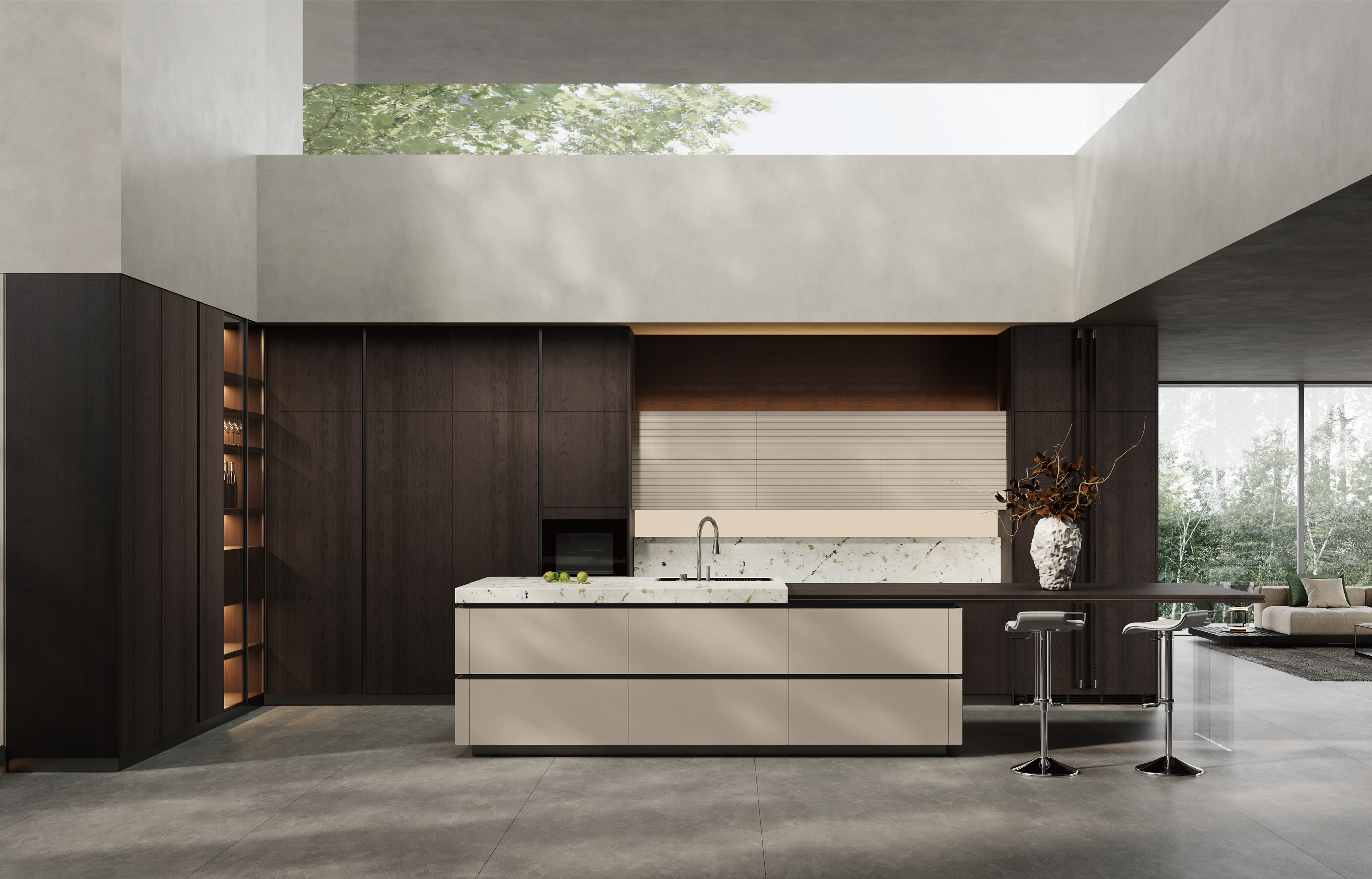通过bv伟德国际1946厨柜量体裁柜,定制出适合主厨下厨的烹饪区和洗涤区的舒适高度。